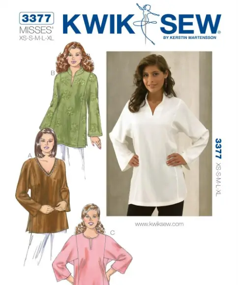 The Kwik Sew K3377 Tunics Sewing Pattern helps you create stylish and comfortable tunics in sizes XS to XL. With clear, step-by-step instructions, it’s an excellent choice for both beginners and experienced sewists. This versatile pattern allows you to experiment with different fabrics and lengths, making it easy to design everyday or dressy looks that match your personal style