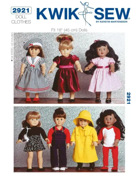 Kwik Sew K2921 Dolls Clothes Sewing Pattern, Size Fits 18-Inch Dolls