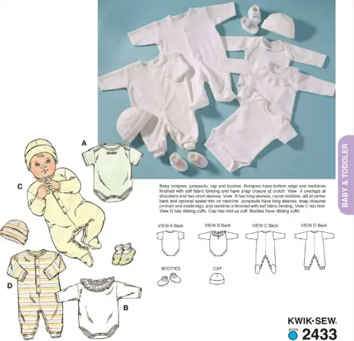 KWIK-SEW PATTERNS K2433OSZ Rompers Sewing Pattern makes it easy to create adorable jumpsuits and hats in a wide range of sizes from XS to XL. Designed with clear, step-by-step instructions, it’s perfect for both beginners and experienced sewists who want reliable results. The pattern includes versatile styles suitable for everyday wear or special occasions, allowing you to customize fabrics, colors, and finishes for a truly personal touch