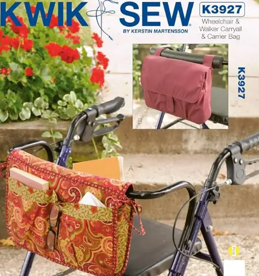 The Kwik Sew K3927 Wheelchair and Walker Carryall and Carrier Bag Sewing Pattern helps you create practical and stylish storage solutions for mobility aids. Designed for convenience, this pattern features clear instructions and adaptable designs that fit most walkers and wheelchairs. It’s perfect for keeping personal items close at hand while adding a touch of handmade comfort and personality to everyday use