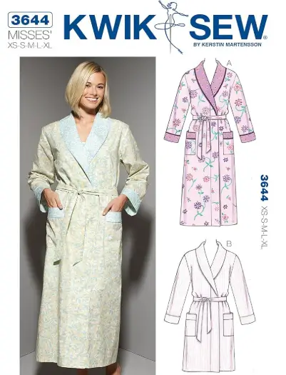The Kwik Sew K3644 Robes Sewing Pattern allows you to create luxurious, comfortable robes in sizes XS to XL. Designed with clear, easy-to-follow instructions, it’s great for sewists of all experience levels. Perfect for cozy mornings or relaxing evenings, this pattern lets you customize your robe with your favorite fabrics and finishes for a truly personal touch