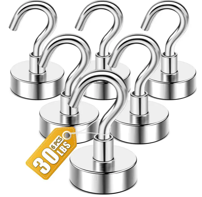 These DIYMAG N52 magnetic hooks are designed to hold up to 30 lbs, making them perfect for hanging string lights, décor, or essentials in cruise cabins, kitchens, classrooms, and outdoor spaces. Their strong magnetic grip ensures they stay securely in place on any metal surface without sliding or damaging walls. With a set of six durable hooks, they offer a quick and reliable solution for organizing or decorating during vacations, events, or everyday use